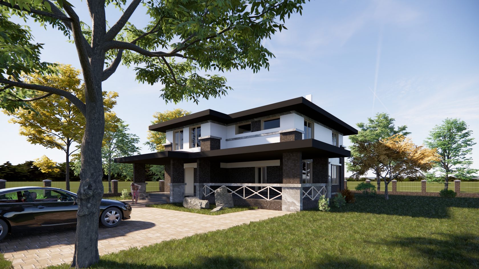 Проект двухэтажного дома с подвалом в «стиле прерий», 2016 год.